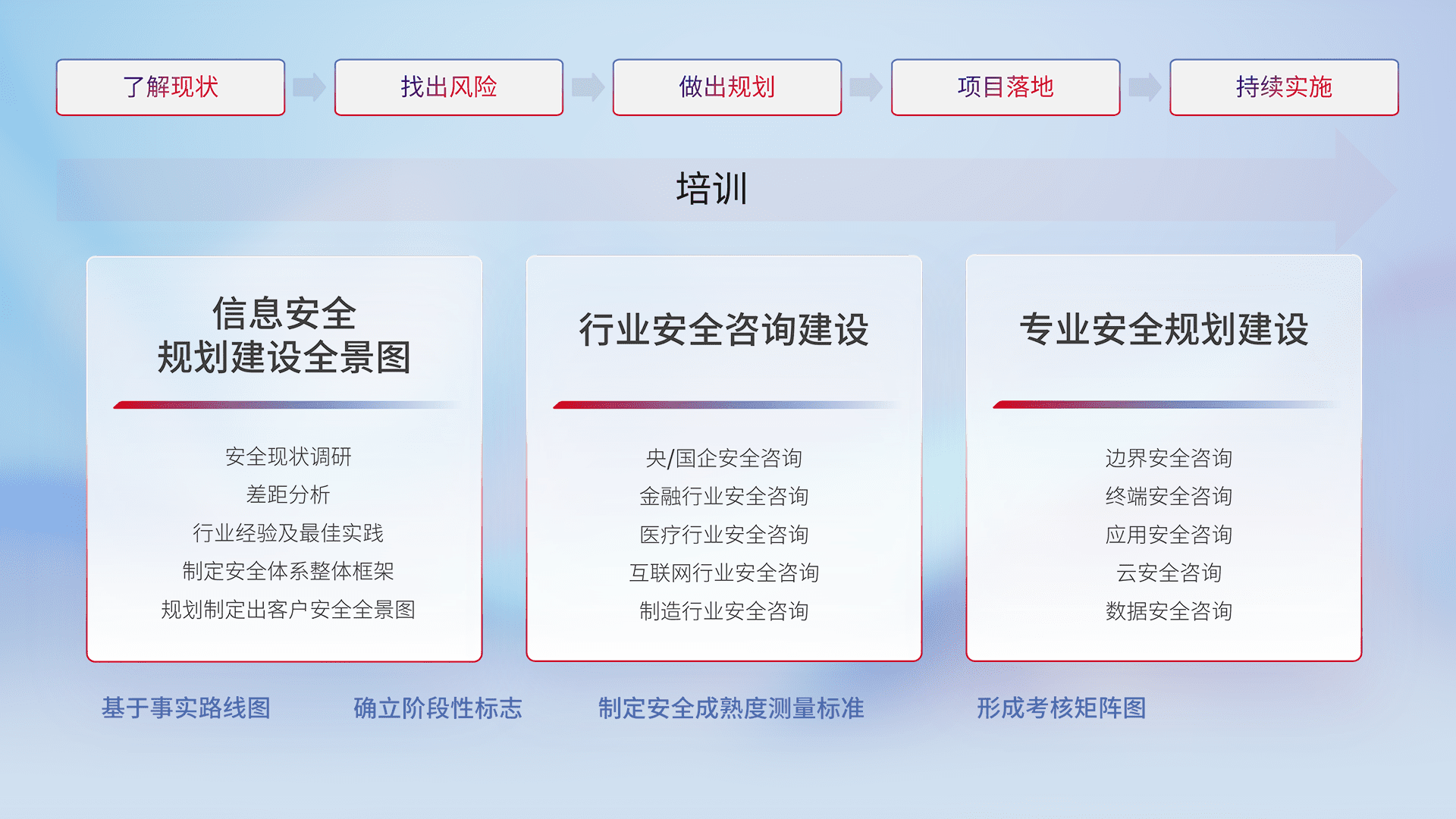 通过专业的法律咨询解读、、合规架构体现、、差异化解决方案、、、、测试实施支持等服务,,,,为客户量身打造等保合规体系。。